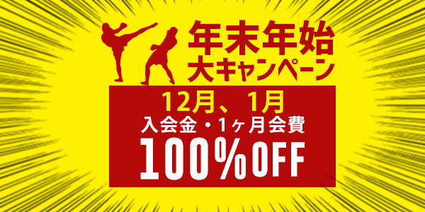 12、1月は入会金・一ヶ月会費100%OFF!キャンペーン!